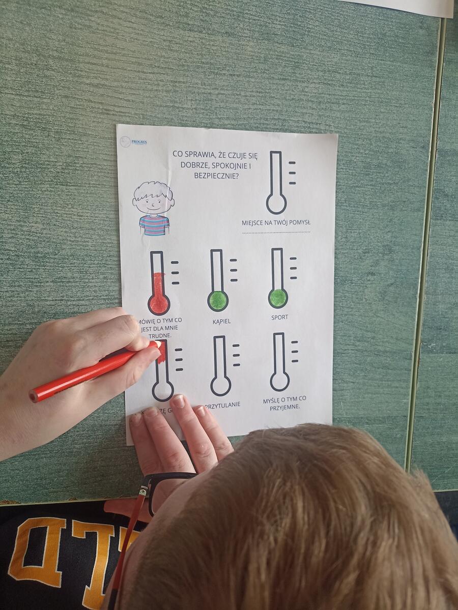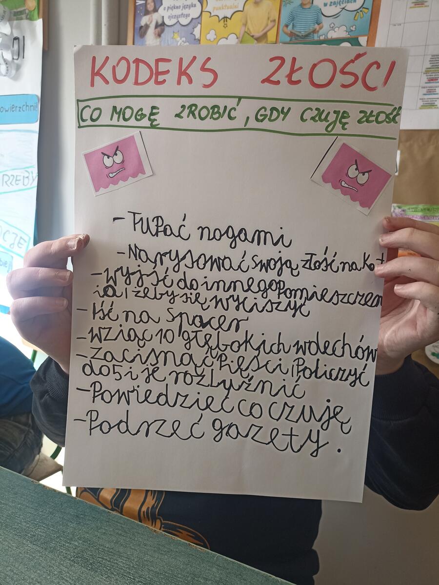 Podczas zajęć uczniowie uczyli się rozpoznawać i nazywać swoje emocje oraz mówić o nich w bezpieczny sposób. Wykonywali ćwiczenia pomagające określić aktualne samopoczucie, poznali znaczenie emocji oraz ich wpływ na zachowanie. Uczniowie wykonywali plakat, dopasowywali emotki różnych emocji, wypełniali karty pracy oraz inne zadania pomagające zrozumieć czym są emocje i jak sobie z nimi radzić. Zajęcia sprzyjały rozwijaniu samoświadomości, empatii oraz umiejętności wyrażania uczuć w relacjach z innymi.