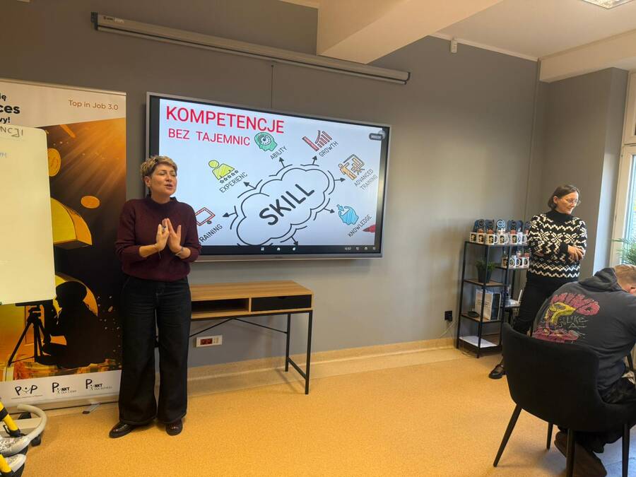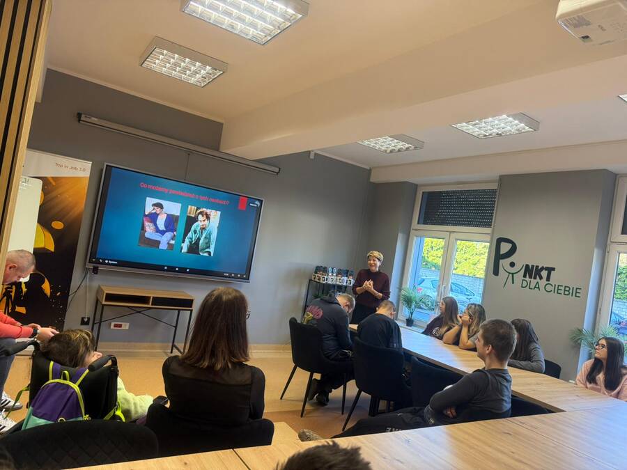 Młodzież zwiedziła urząd i wzięła udział w ciekawych zajęciach o autoprezentacji – dowiedziała się, jak dobrze zaprezentować się podczas rozmowy kwalifikacyjnej, jak mówić o swoich mocnych stronach i jak budować pozytywny wizerunek.
