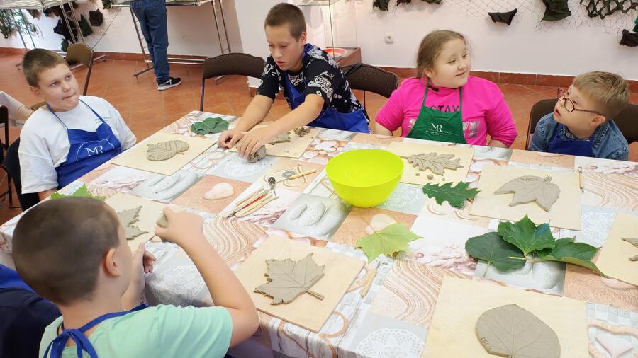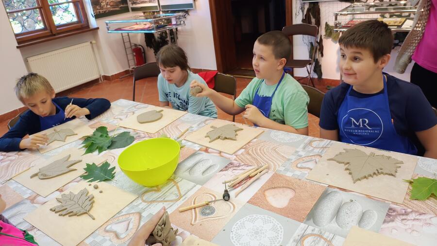 Uczniowie poznali nowy, ciekawy materiał twórczy, jakim jest glina oraz sposób pracy z tym tworzywem plastycznym. Ugniatali glinę, z pomocą wycinali kształty oraz rysowali na glinie wzorki. Wykonali prace płaskie - jesienne liście , a chętni uczniowie - dodatkowo miseczki.